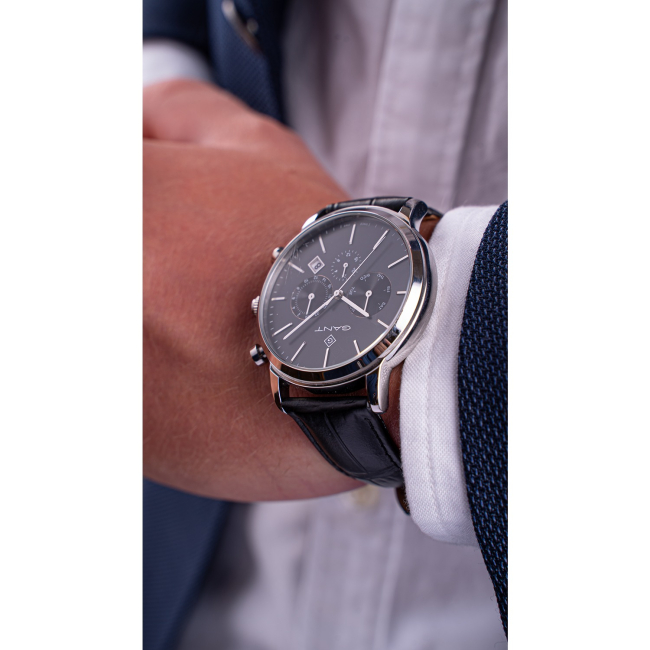 Ανδρικό ρολόι GANT G132006 της σειράς “Cleveland”, με δερμάτινο μαύρο λουράκι.