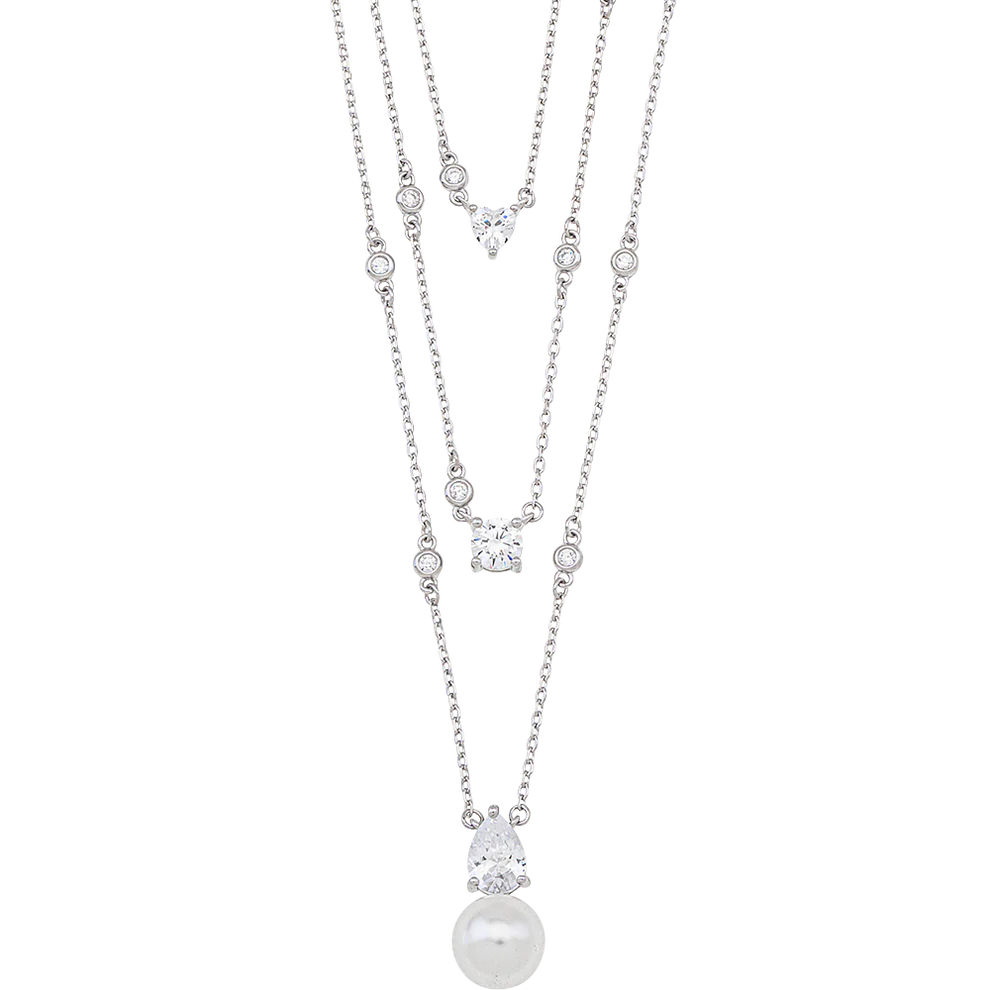 Ασημένιο Κολιέ Τριπλό με Λευκά Ζιργκόν και Πέρλα 925° Breeze