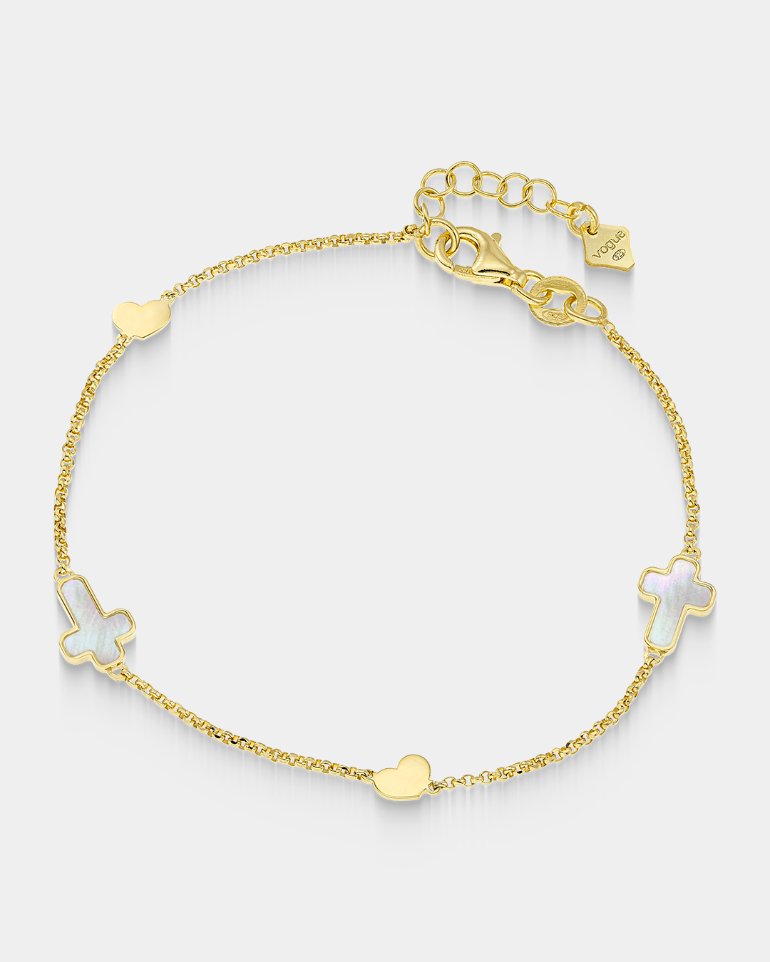 Βραχιόλι ασημένιο 925 επιχρυσωμένο με σταυρουδάκια και καρδιές.