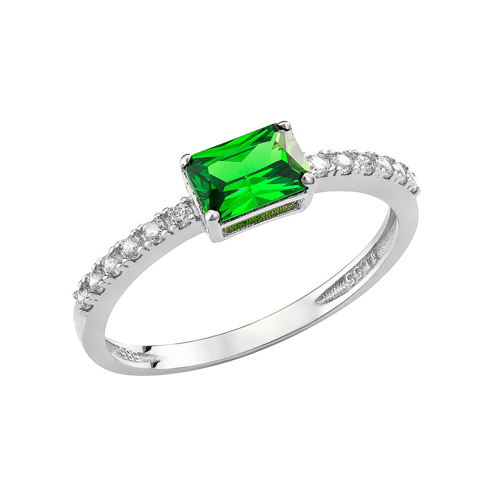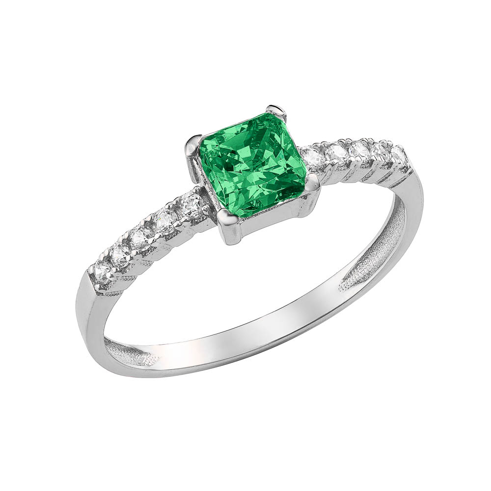 Γυναικείο Δαχτυλίδι Λευκόχρυσο 14Κ Με Τετράγωνη Πράσινη Πέτρα Ζιργκόν