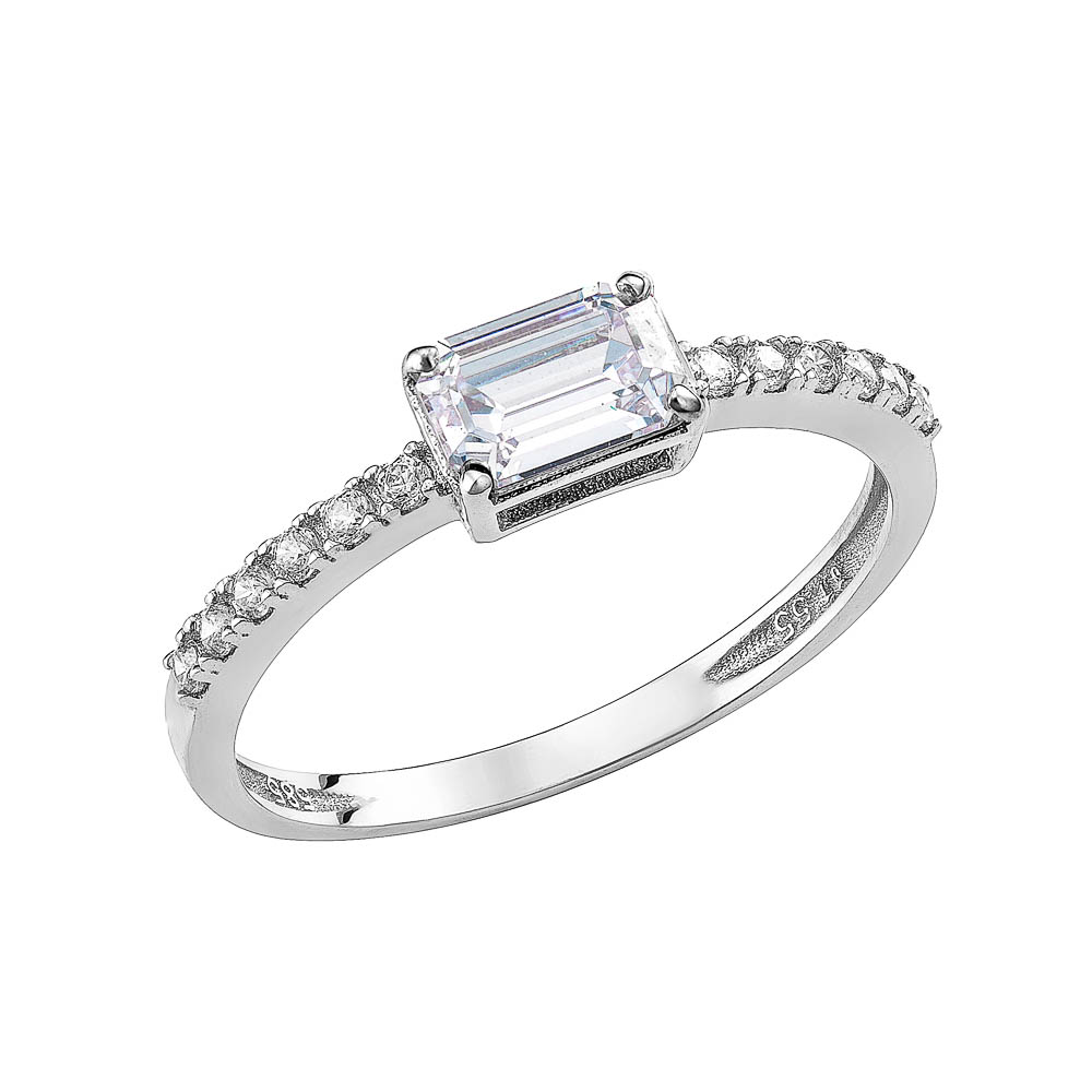 Γυναικείο Δαχτυλίδι Λευκόχρυσο 14Κ Με Τετράγωνη Πράσινη Πέτρα Ζιργκόν Στο Κέντρο & Στρόγγυλες Κατά Μήκος Του Δαχτυλιδιού MSD-24817W