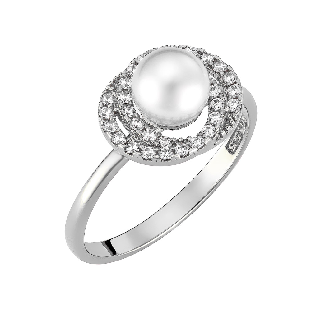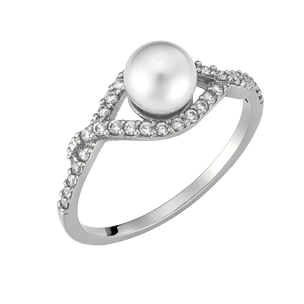 Δαχτυλίδι Λευκόχρυσο 14K Με Μαργαριτάρι & Λευκές Πέτρες Ζιργκόν MSD-10209W