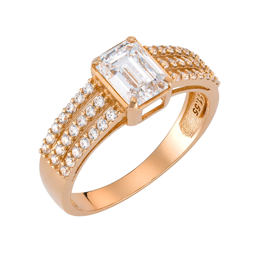 Δαχτυλίδι Ροζέτα Ροζ Χρυσό 14Κ Με Μπλε Ορθογώνια Πέτρα Ζιργκον MSD-10200R