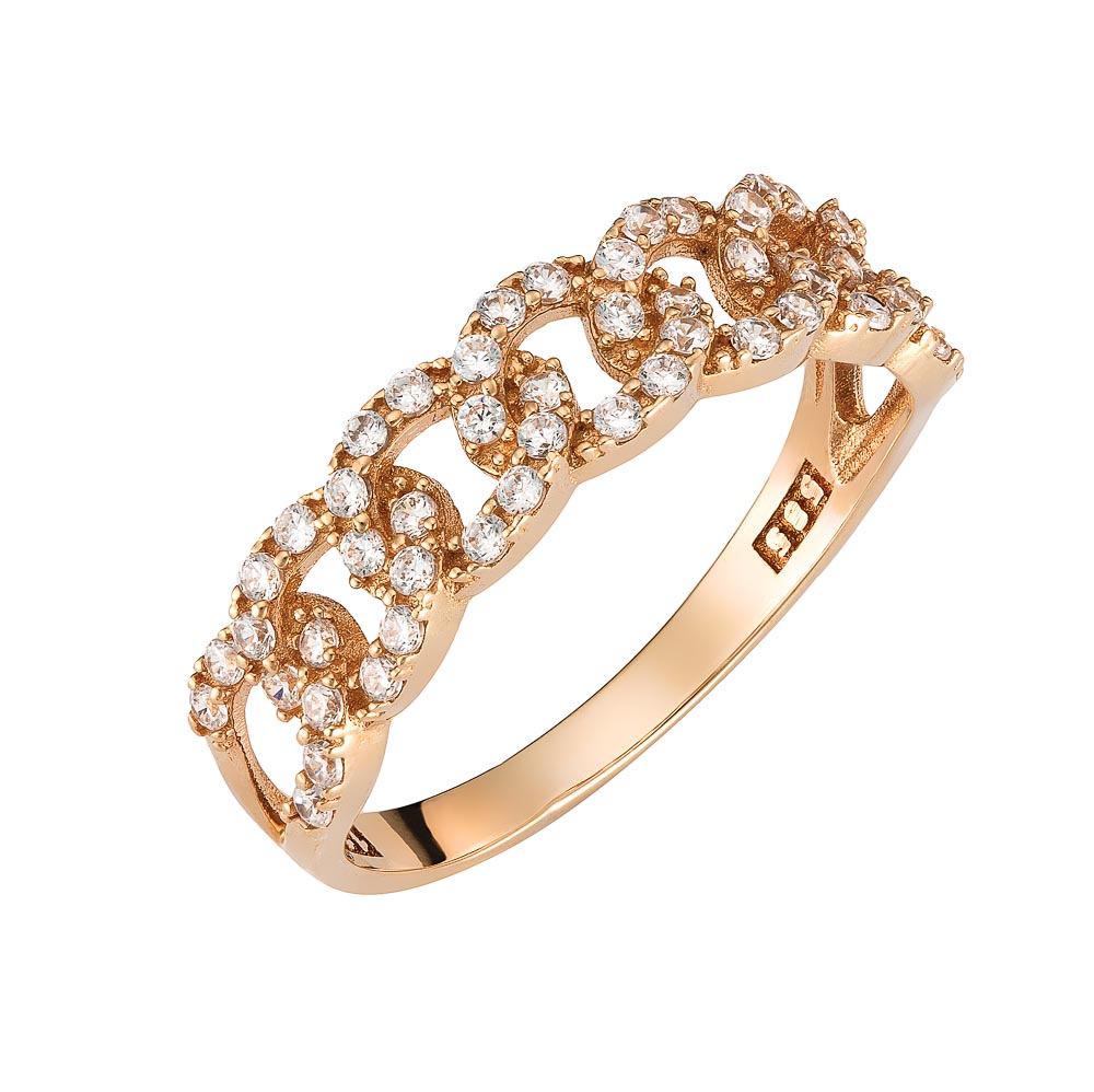 Χρυσό δαχτυλίδι ροζ Κ14 με λευκές πέτρες ζιργκόν