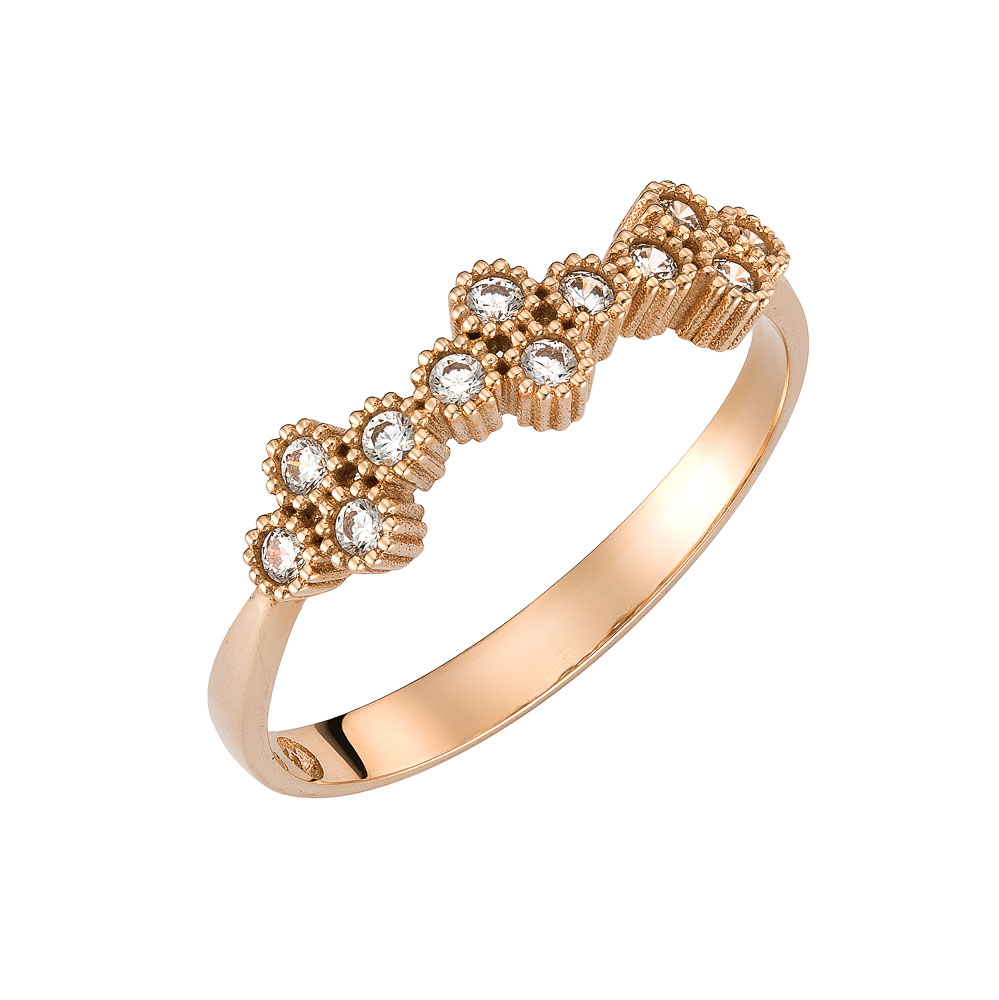 Ροζ χρυσό δαχτυλίδι Κ14 με λευκές πέτρες ζιργκόν.
