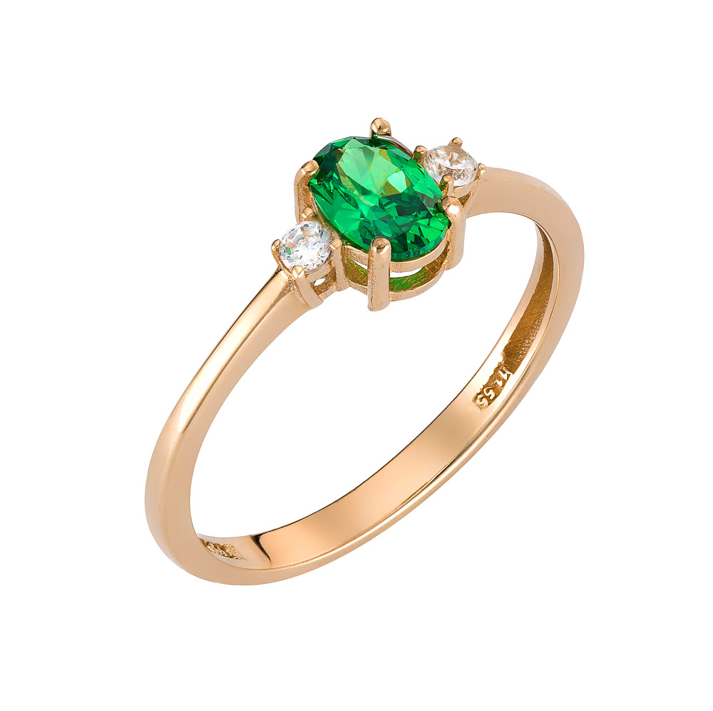 Δαχτυλίδι ροζ χρυσό σειρέ 14Κ με κεντρική οβαλ πράσινη πέτρα ζιργκον & δύο στρόγγυλες λευκές