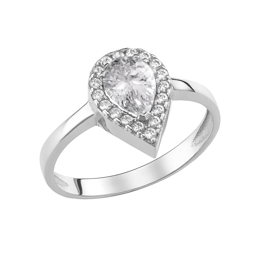 Δαχτυλίδι Χρυσό 14Κ Με Γαλάζια Πέτρα Ζιργκόν Σε Σχήμα Δάκρυ & Στρόγγυλες Περιμετρικά MSD-21929W