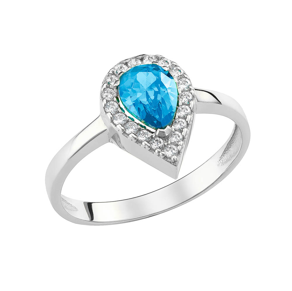 Δαχτυλίδι χρυσό 14Κ με γαλάζια πέτρα ζιργκόν σε σχήμα δάκρυ και στρόγγυλες περιμετρικά