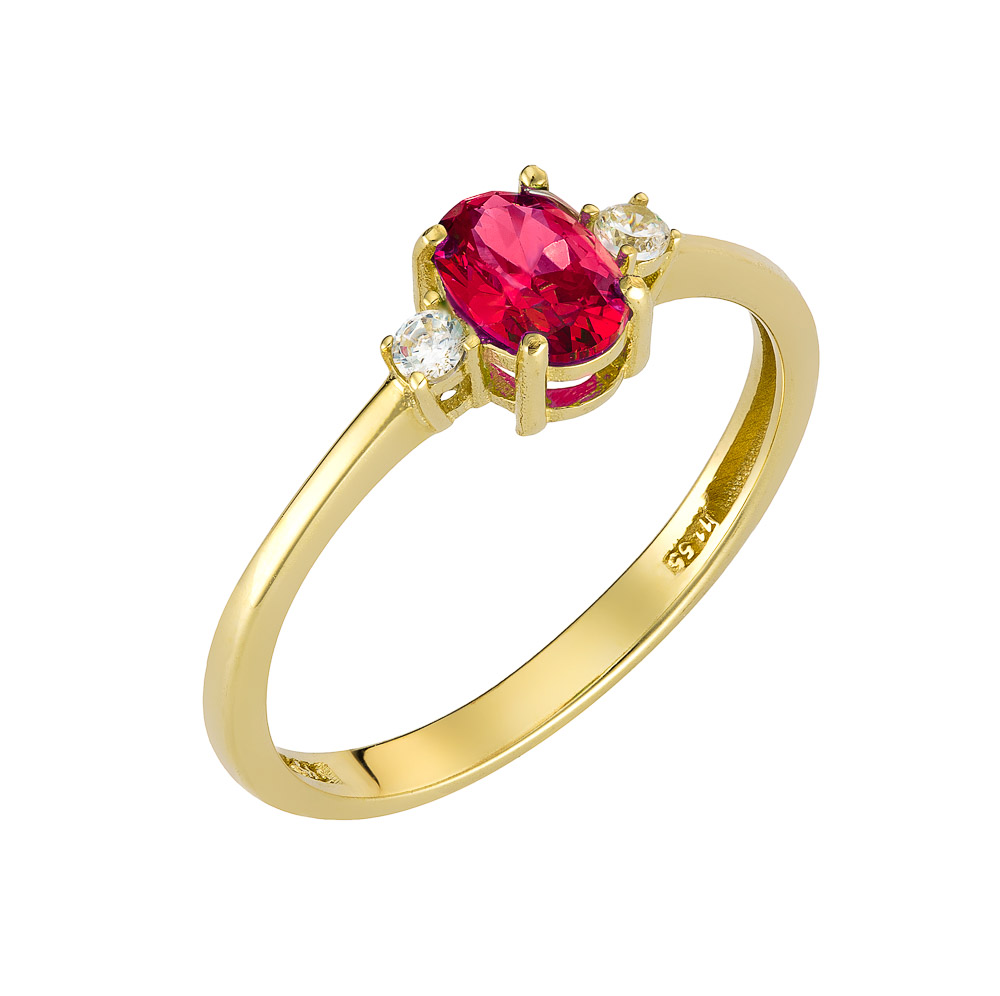 Δαχτυλίδι χρυσό σειρέ 14Κ με κεντρική οβαλ λευκή πέτρα ζιργκον & δύο στρόγγυλες λευκές