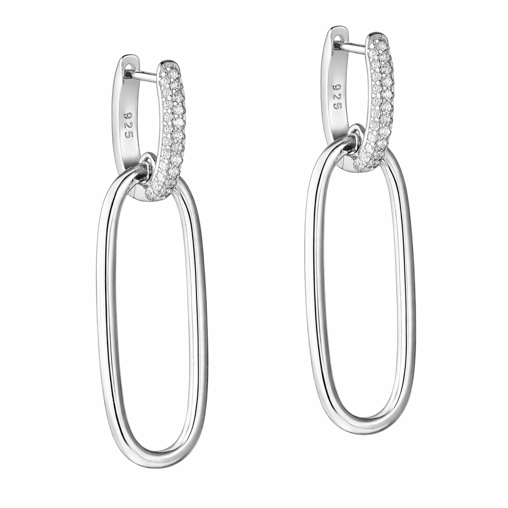 Εντυπωσιακά κρεμαστά σκουλαρίκια ασημένια 925 κρικάκια με λευκές πέτρες ζιργκόν και κρεμαστό οβάλ κρίκο