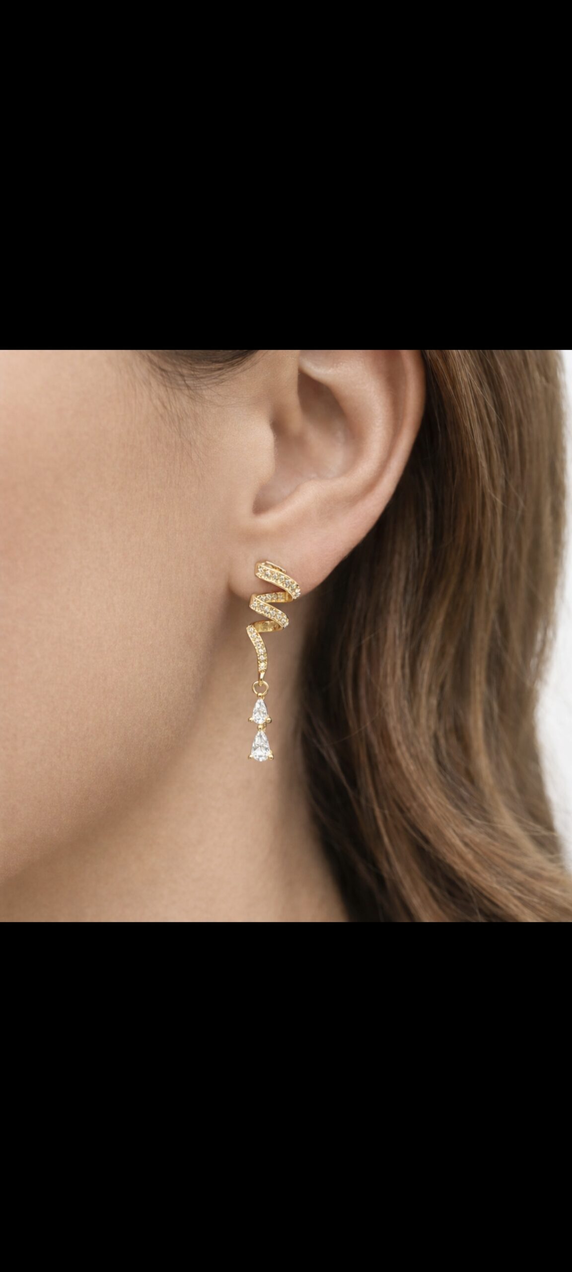 Εντυπωσιακά σκουλαρίκια κρεμαστά ασημένια επιχρυσωμένα 925 με λευκές πέτρες ζιργκόν κατά μήκος και λευκές κρεμαστές πέτρες ζιργκόν σε σχήμα δάκρυ