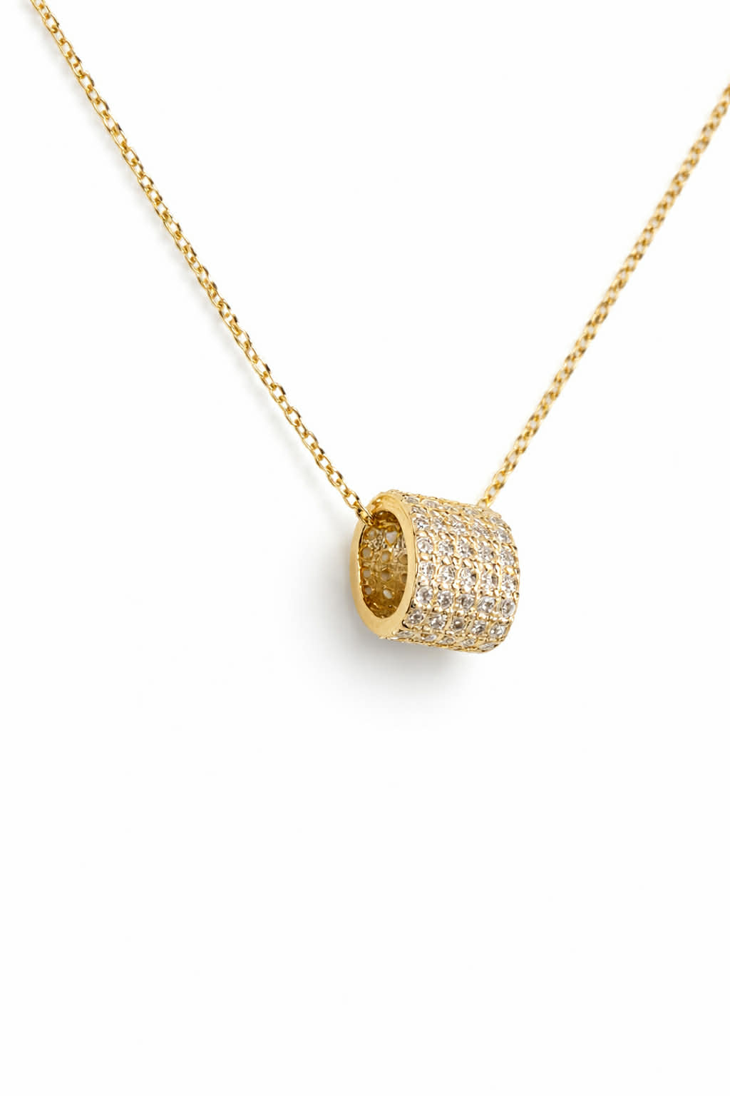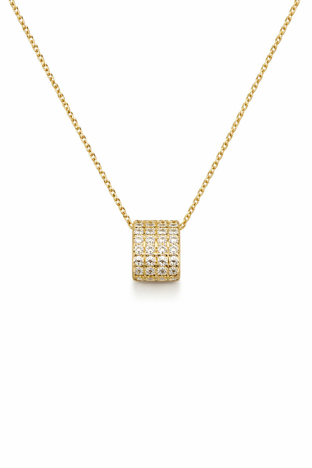 Κολιέ Ασημένιο Επιχρυσωμένο 925 Οβάλ με Λευκές Πέτρες Ζιργκόν Περιμετρικά