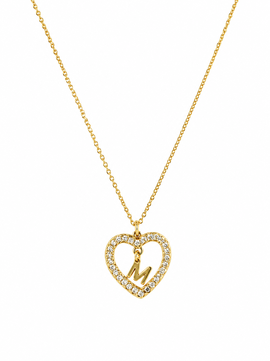 Κολιέ Ασημένιο 925 επιχρυσωμένο καρδιά με λευκές πέτρες ζιργκόν και μονόγραμμα “Σ”