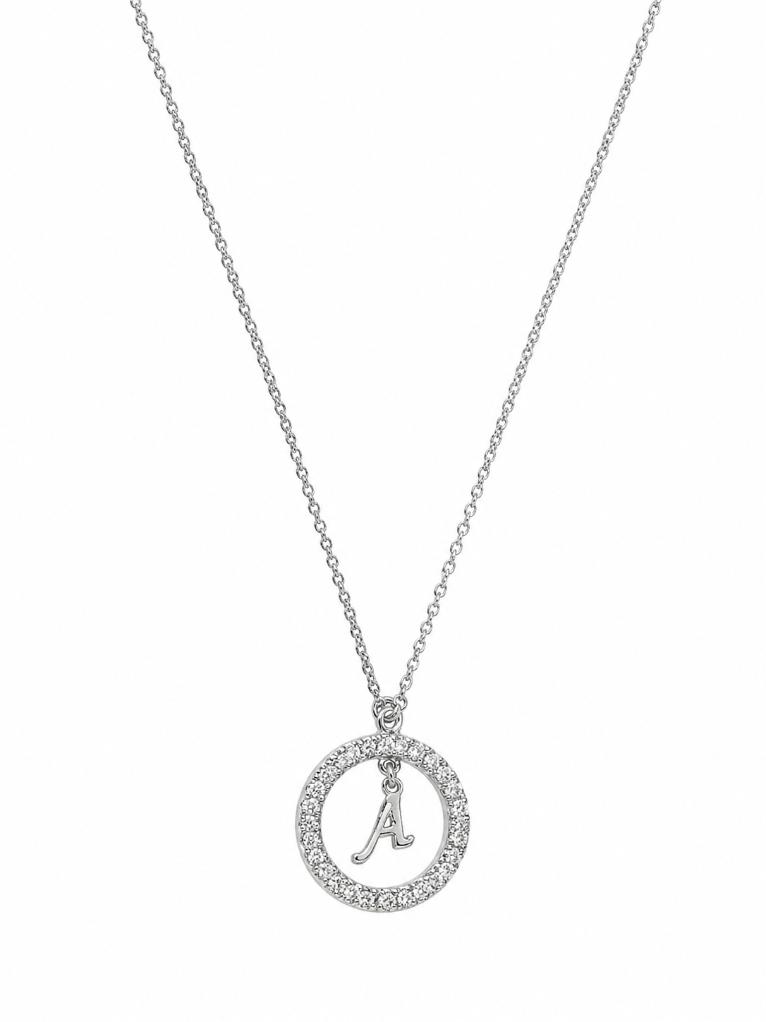 Κολιέ Ασημένιο 925 επιχρυσωμένο κύκλος με λευκές πέτρες ζιργκόν και μονόγραμμα “A”