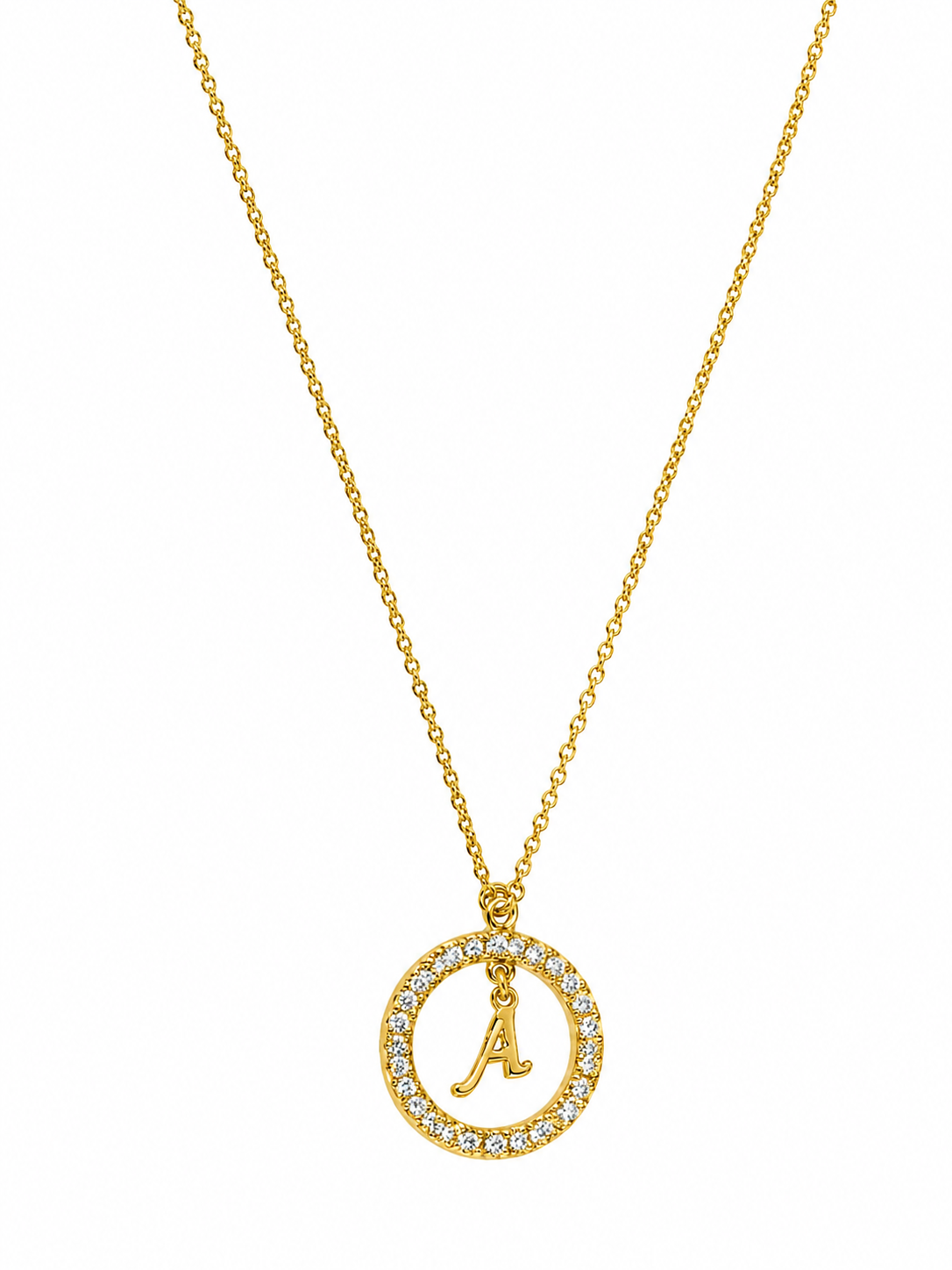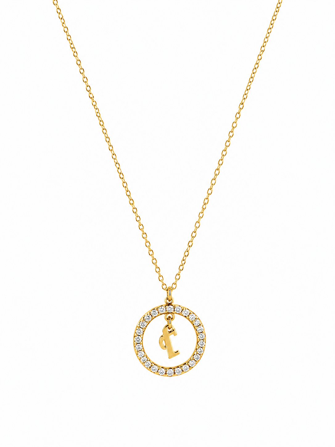 Κολιέ Ασημένιο 925 επιχρυσωμένο κύκλος με λευκές πέτρες ζιργκόν και μονόγραμμα “Γ”