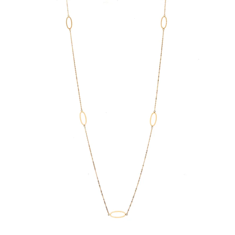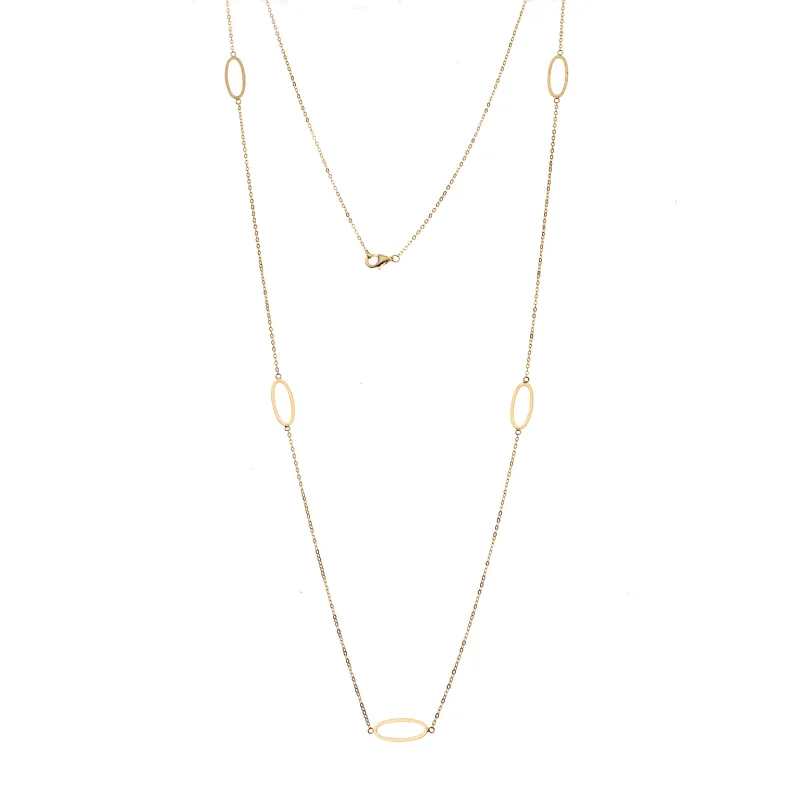 Κολιέ ασημένιο 925 επιχρυσωμένο μακρύ με οβάλ λουστρέ στοιχεία κατά μήκος της αλυσίδας.