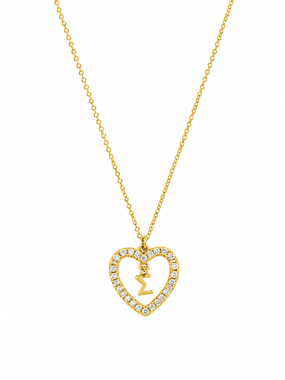 Κολιέ Ασημένιο 925 καρδιά με λευκές πέτρες ζιργκόν και μονόγραμμα “Σ”