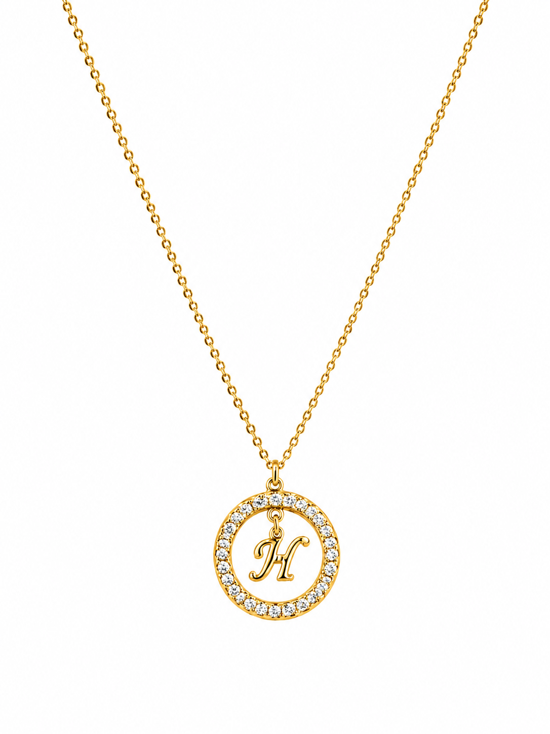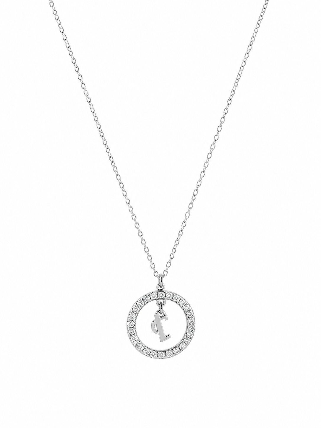 Κολιέ Ασημένιο 925 κύκλος με λευκές πέτρες ζιργκόν και μονόγραμμα “Η”