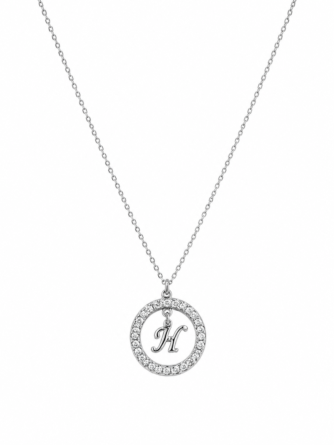 Κολιέ Ασημένιο 925 Κύκλος Με Λευκές Πέτρες Ζιργκόν & Μονόγραμμα “Η” Στο Κέντρο MRS-24897W