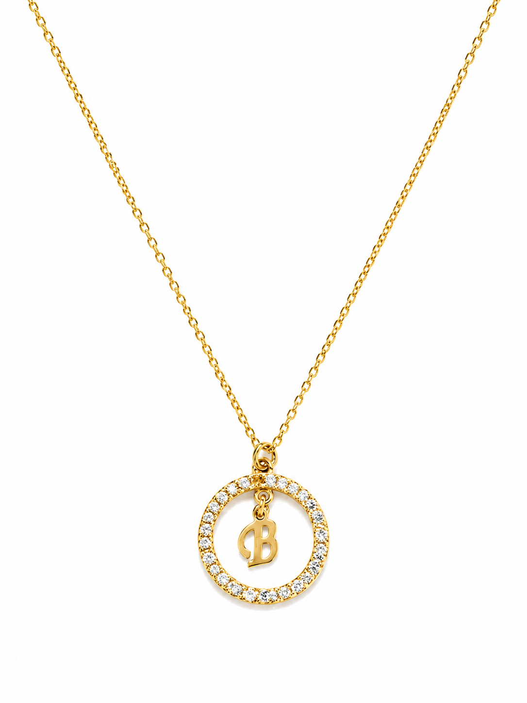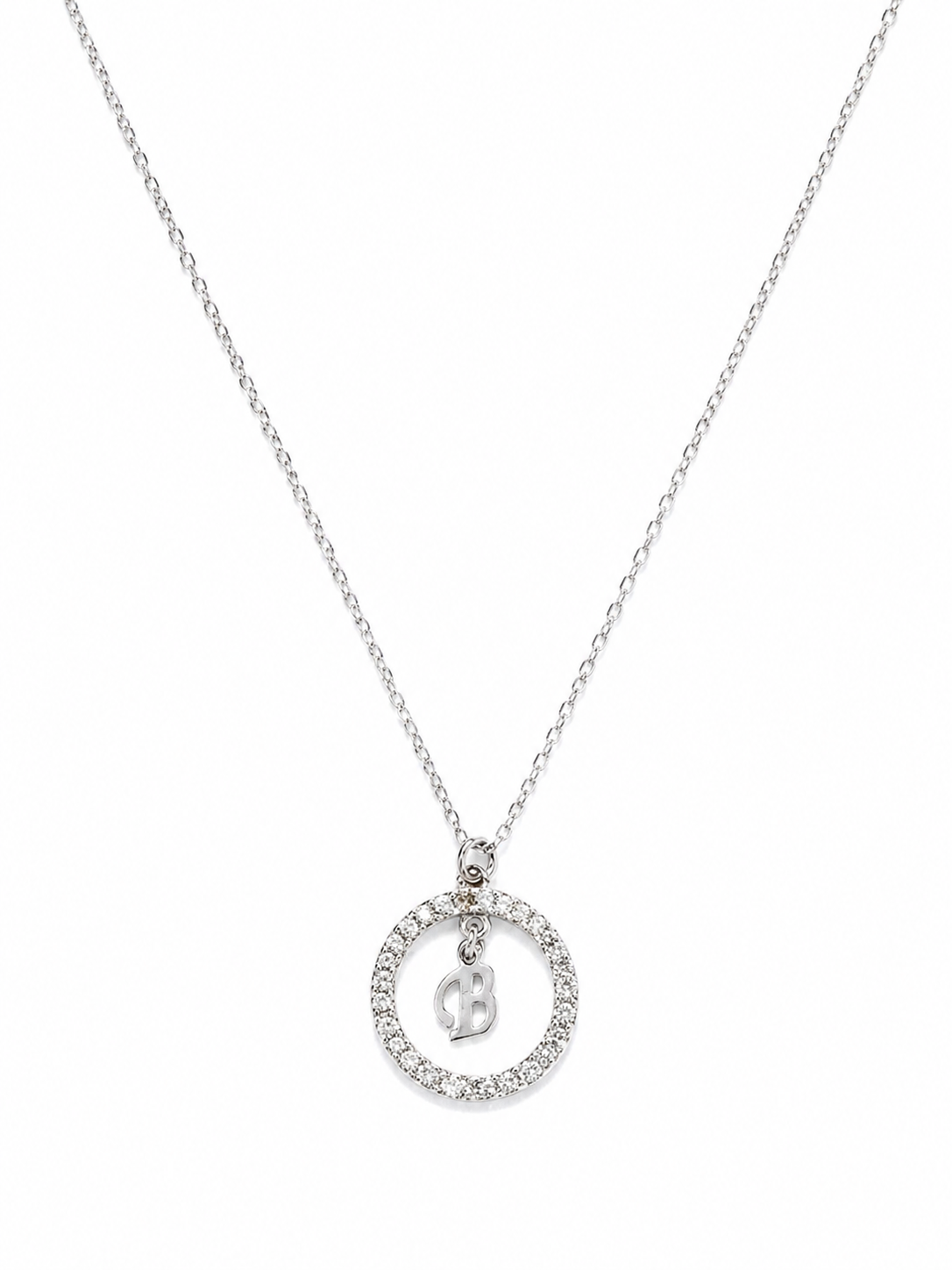 Κολιέ Ασημένιο 925 κύκλος με λευκές πέτρες ζιργκόν και μονόγραμμα “Β”
