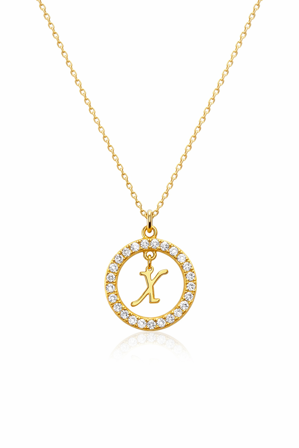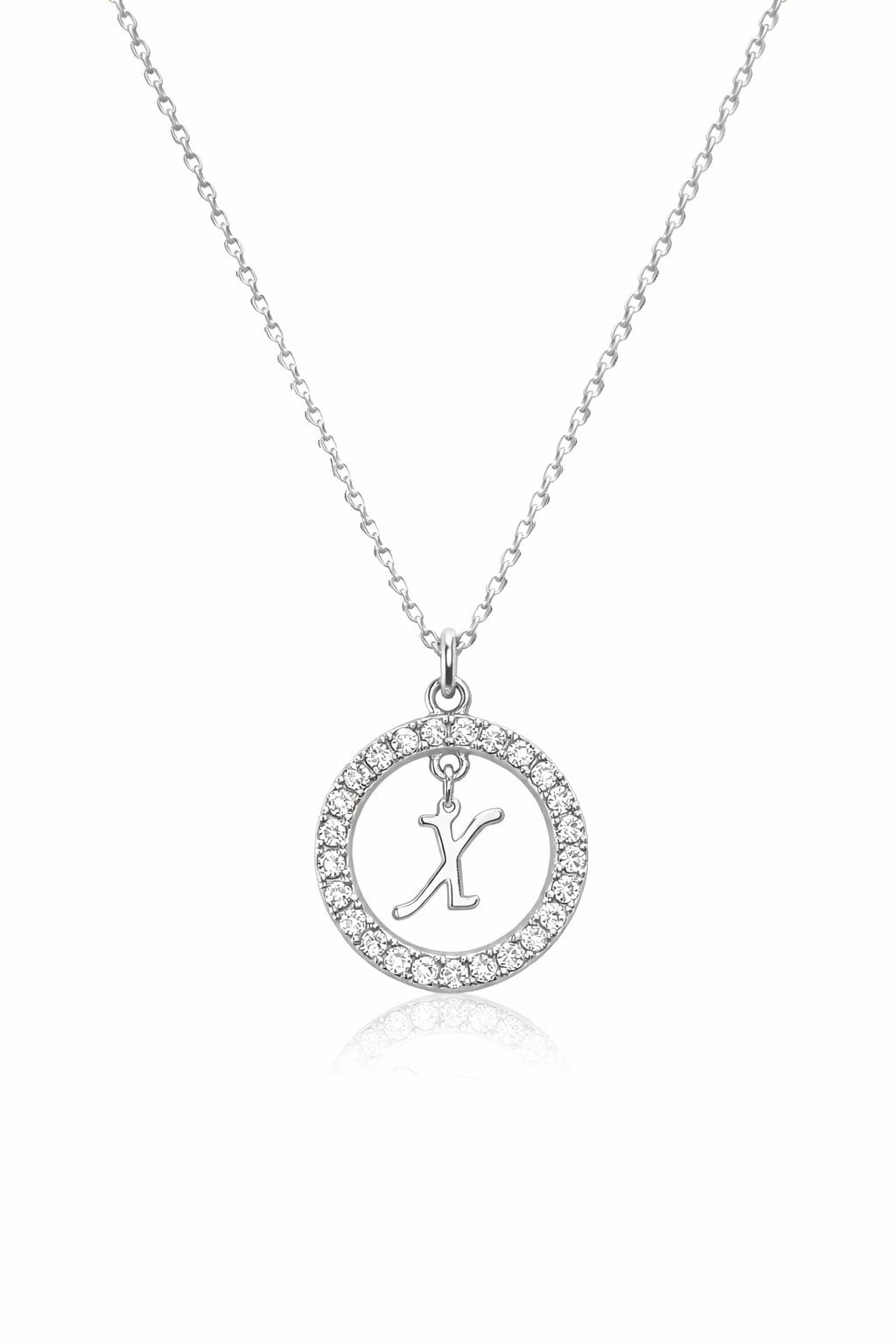 Κολιέ Ασημένιο 925 Κύκλος Με Λευκές Πέτρες Ζιργκόν & Μονόγραμμα “Χ” Στο Κέντρο MRS-24892W
