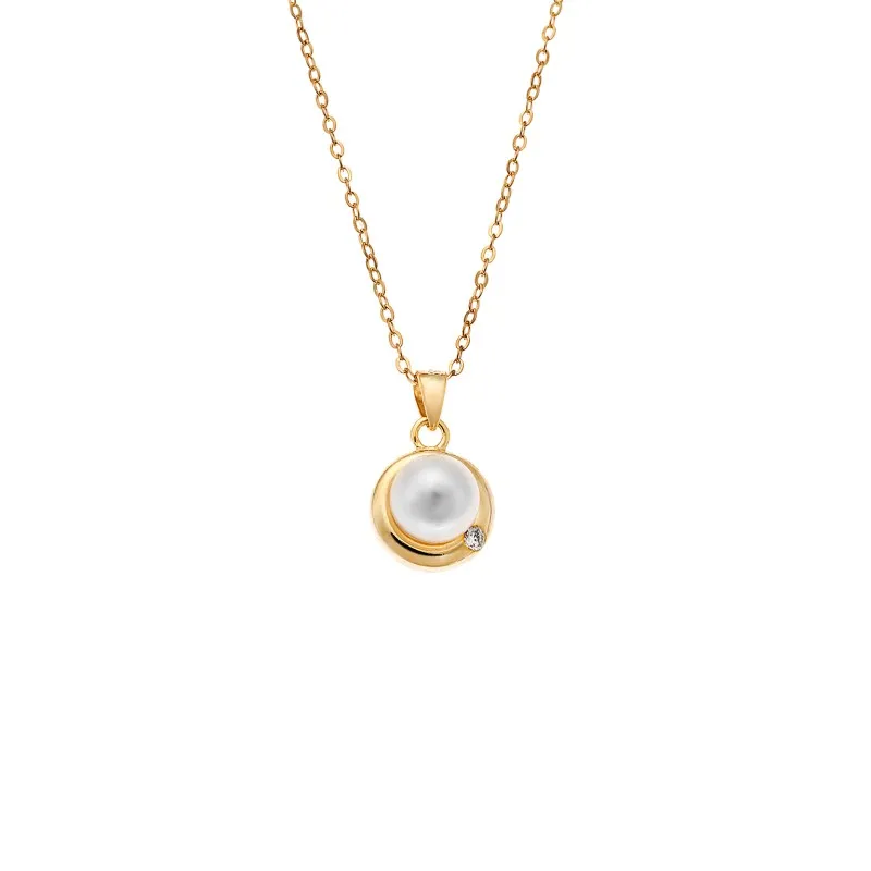 Κολιέ ασημένιο 925 με μαργαριτάρι λουστρέ περιμετρικά και λεπτομέρεια από λευκή πέτρα ζιργκόν.l