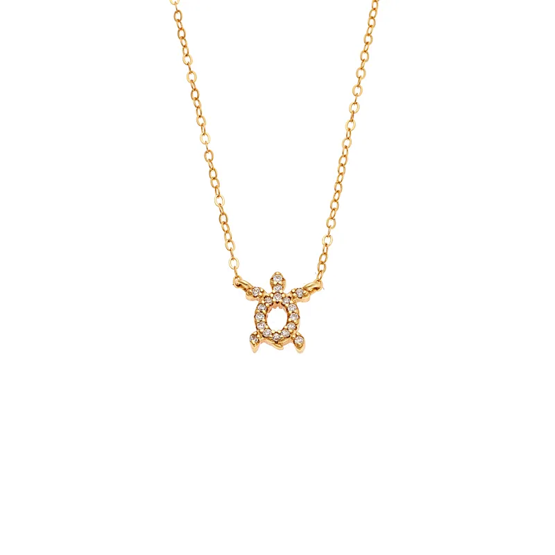 Κολιέ ασημένιο 925 επιχρυσωμένο χελωνάκι με λευκές πέτρες ζιργκόν.l