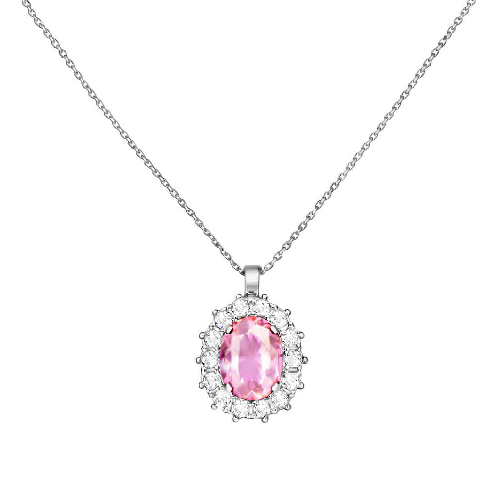 Κολιέ λευκόχρυσο 14K οβάλ με Μωβ κεντρική πέτρα και λευκές περιμετρικά