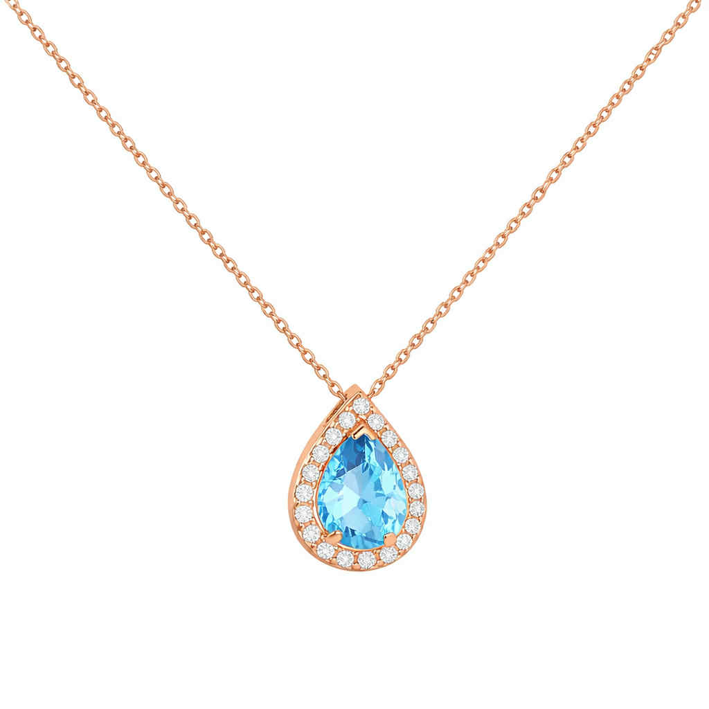 Κολιέ Ροζ Χρυσό Κ14 Ροζέτα Δάκρυ Με Μωβ Πέτρα Ζιργκόν Στο Κέντρο & Λευκές Περιμετρικά MSK-20845R