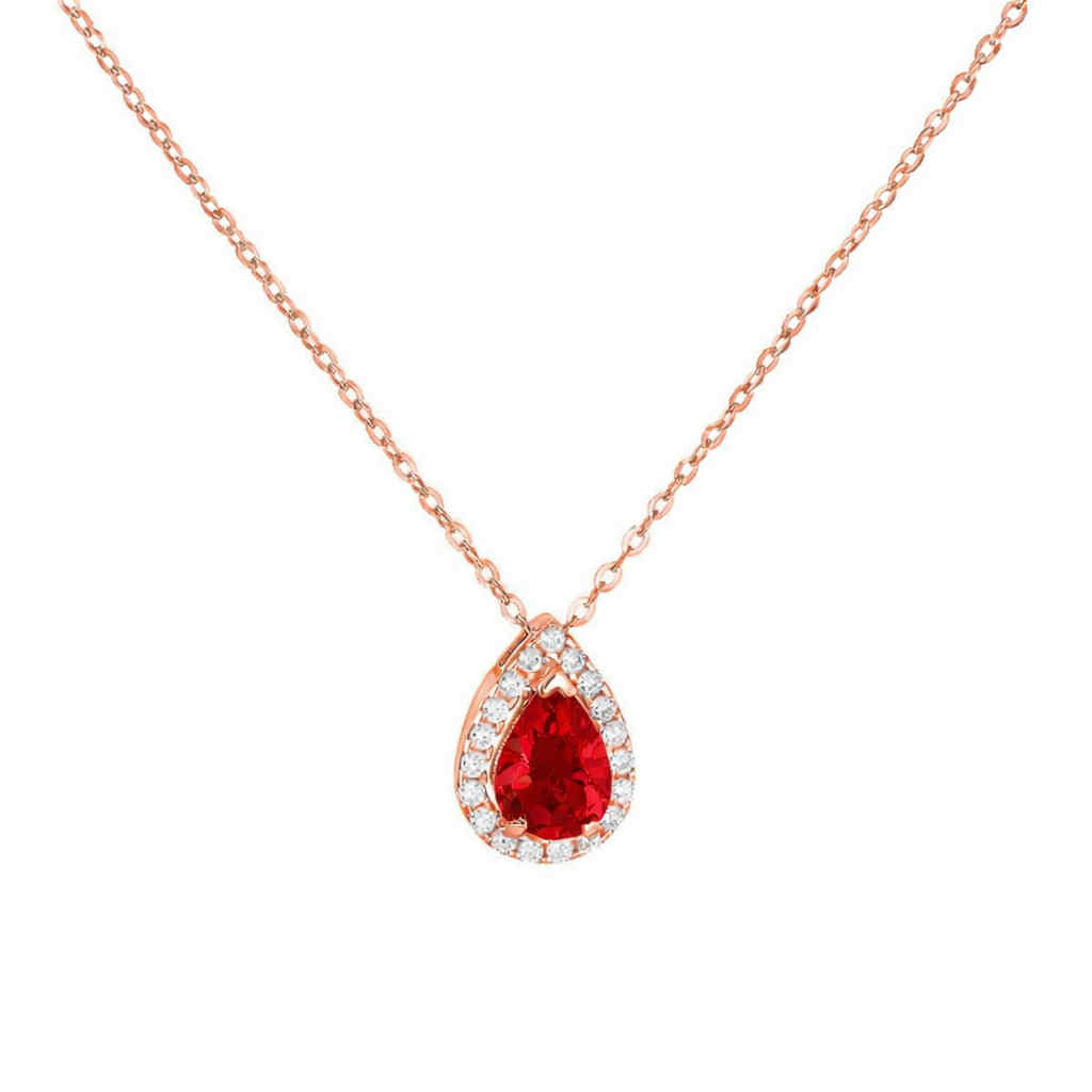 Κολιέ Ροζ Χρυσό Κ14 Ροζέτα Δάκρυ Με μωβ Πέτρα Ζιργκόν Στο Κέντρο
