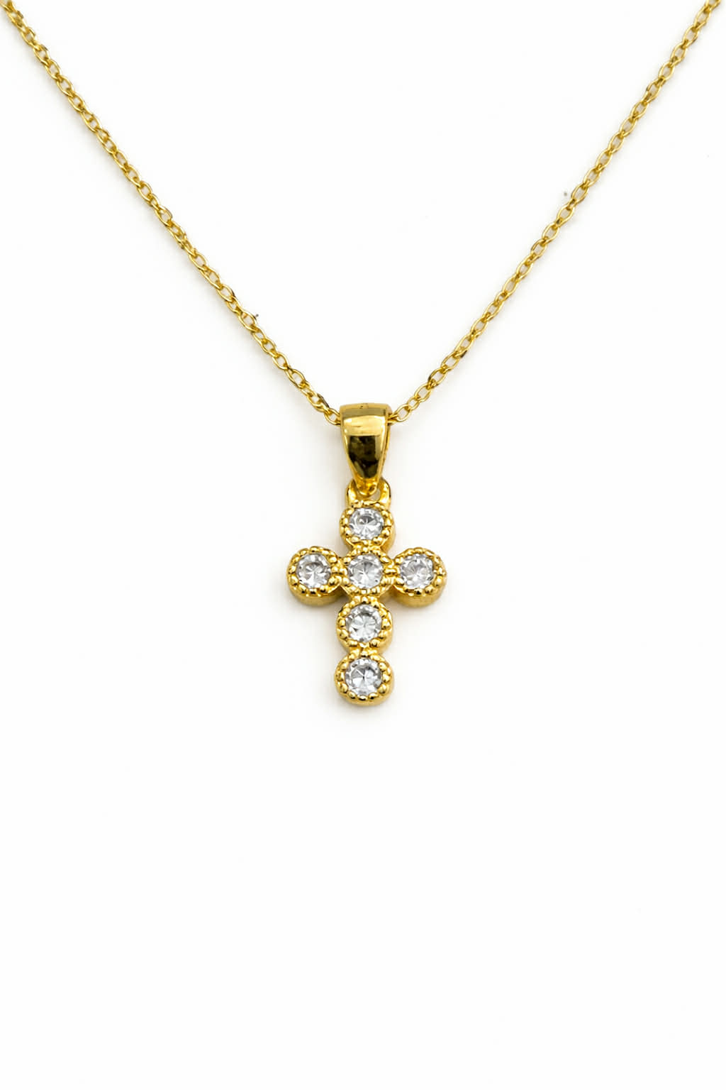 Κολιέ Σταυρός Ασημένιος Επιχρυσωμένος με Λευκές Πέτρες Ζιργκόν