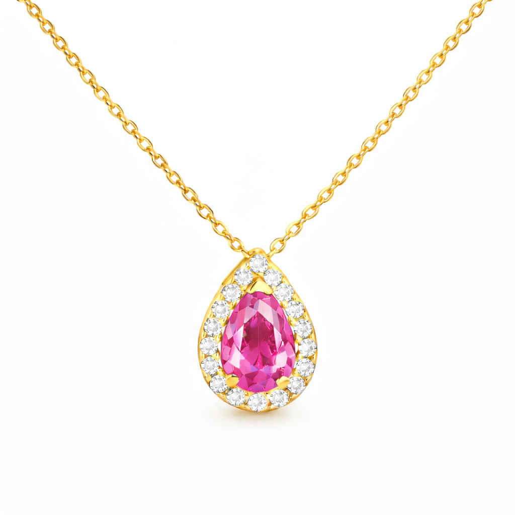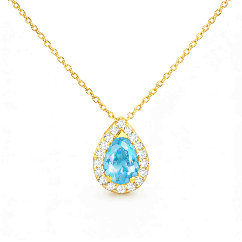 Κολιέ Χρυσό Κ14 Ροζέτα Δάκρυ Με Γαλάζια Πέτρα Ζιργκόν στο κέντρο και Λευκές περιμετρικά