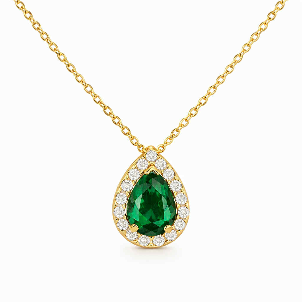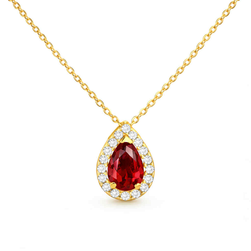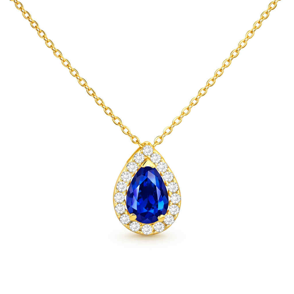 Κολιέ χρυσό 14K ροζέτα δάκρυ με μπλε πέτρα ζιργκόν στο κέντρο και Λευκές περιμετρικά