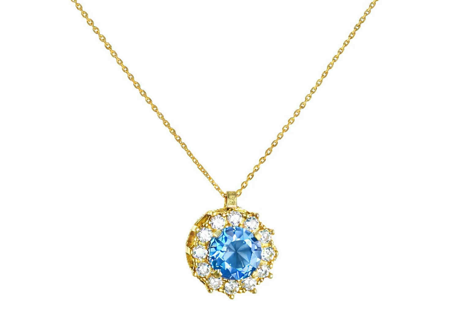 Κολιέ χρυσό 14Κ στρόγγυλο  με ροζ πέτρα ζιργκόν στο κέντρο και λευκές περιμετρικά.