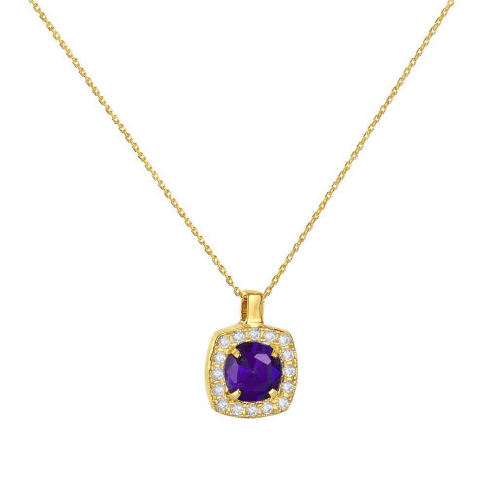 Κολιέ Χρυσό 14Κ Ροζέτα Τετράγωνη Με Στρόγγυλη Κεντρική Κόκκινη Πέτρα Ζιργκόν