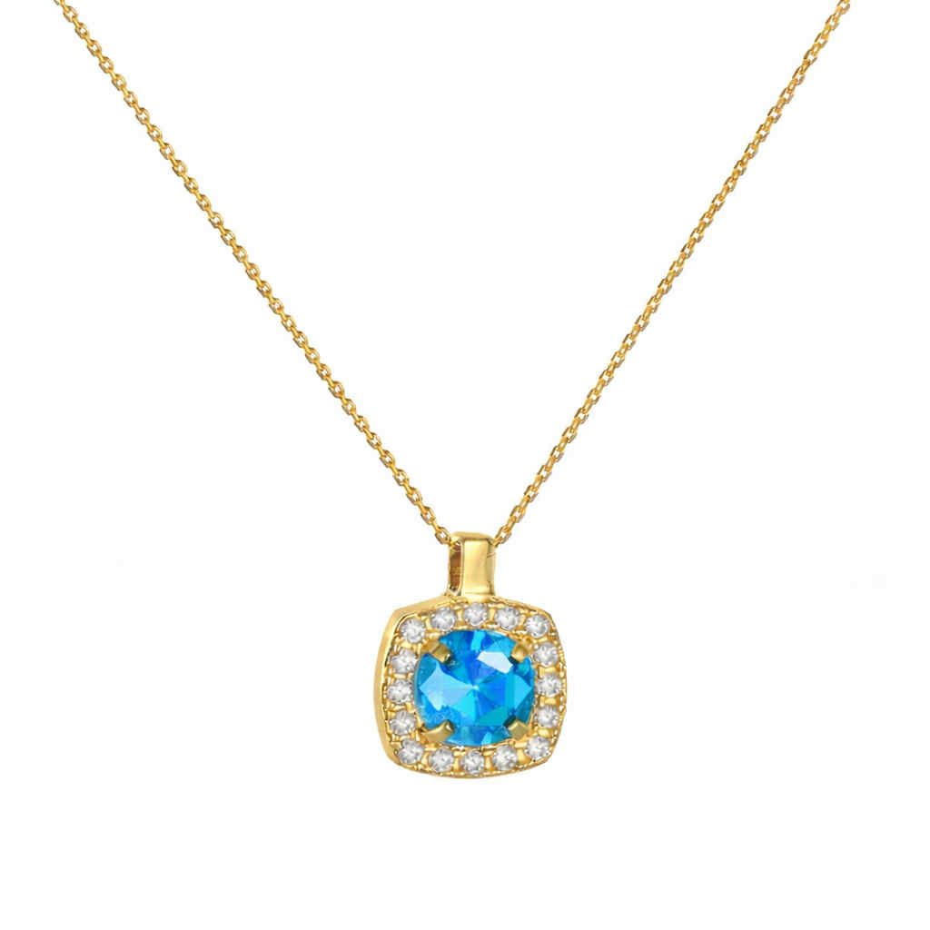 Κολιέ Χρυσό 14Κ Ροζέτα Τετράγωνη Με Στρόγγυλη Κεντρική Ροζ Πέτρα Ζιργκόν