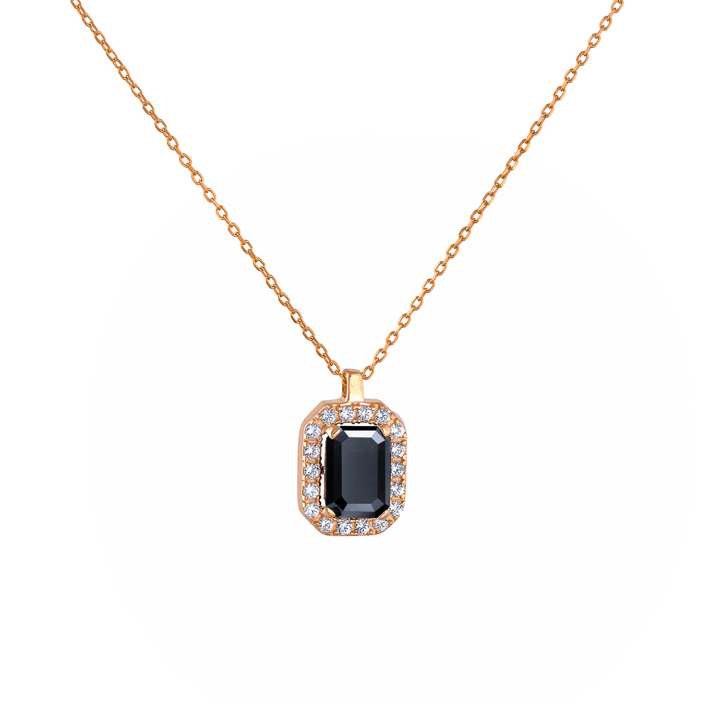 Κολιέ Rosegold Κ14 Ροζέτα Ορθογώνια Με Μπλε Πέτρα Ζιργκόν