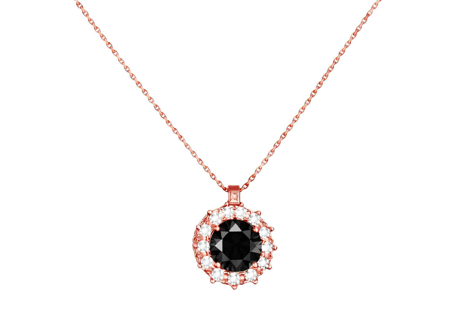 Κολιέ Rosegold Κ14 Στρόγγυλη Ροζέτα με Μαύρη πέτρα ζιργκόν στο κέντρο και λευκές περιμετρικά.