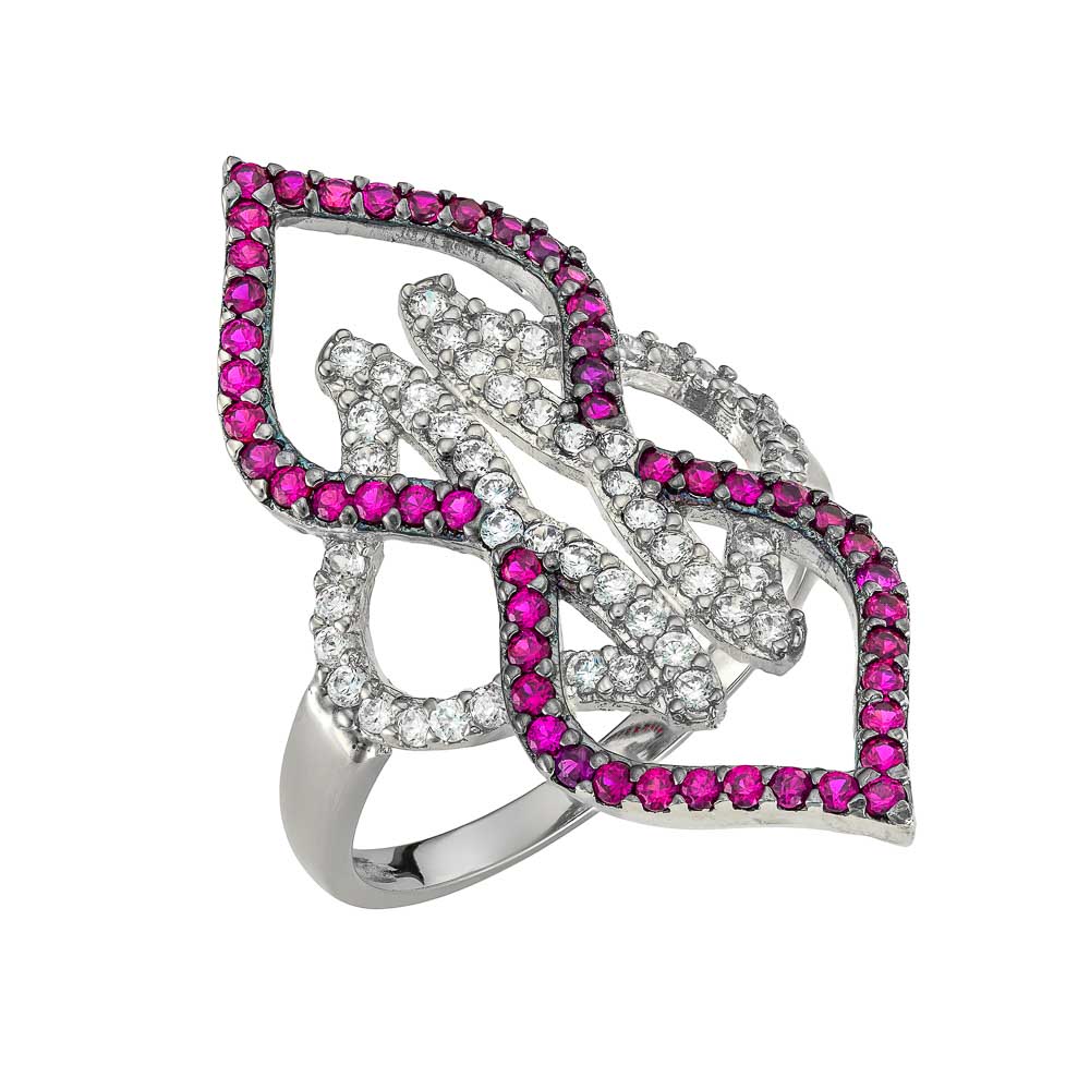 Λευκόχρυσο δαχτυλίδι Κ14 με λευκές και κόκκινες πέτρες ζιργκόν.