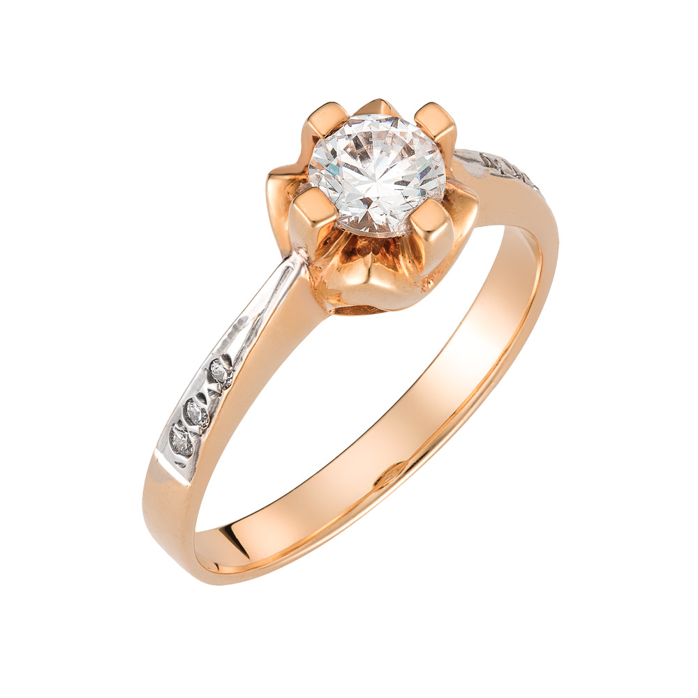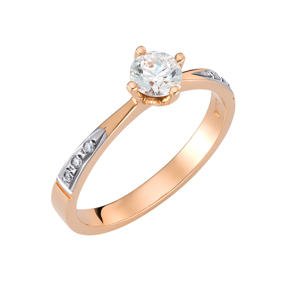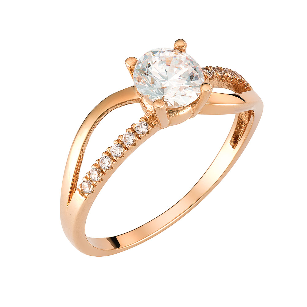Δαχτυλίδι ροζ χρυσό μονόπετρο 14Κ με κεντρική και πλαϊνές λευκές πέτρες ζιργκον.