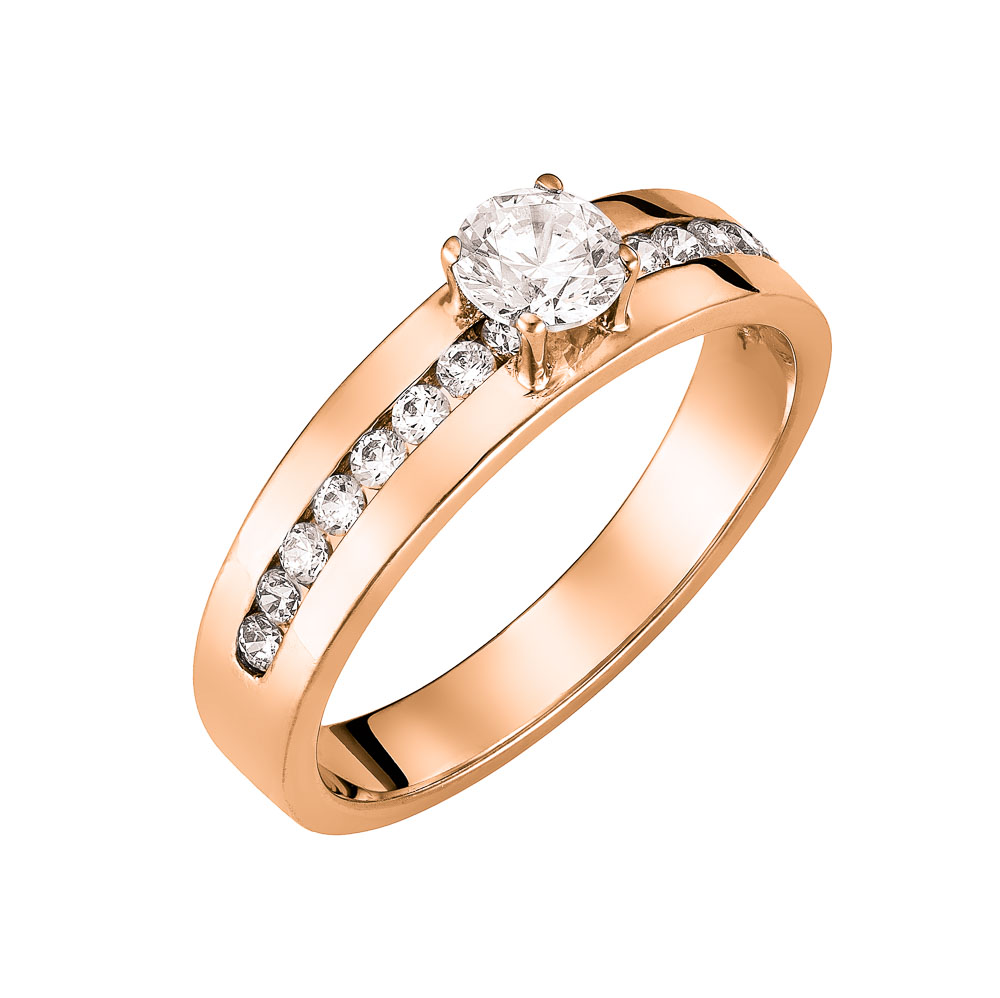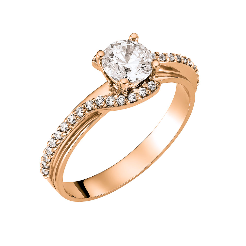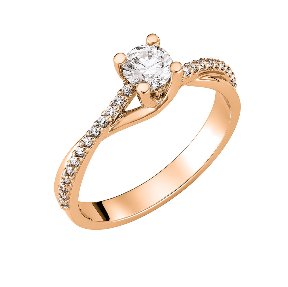 Δαχτυλίδι ροζ χρυσό μονόπετρο 14Κ με κεντρική και πλαϊνές λευκές πέτρες ζιργκον.