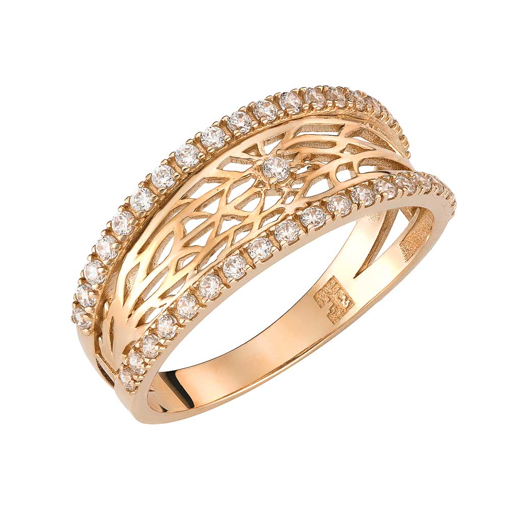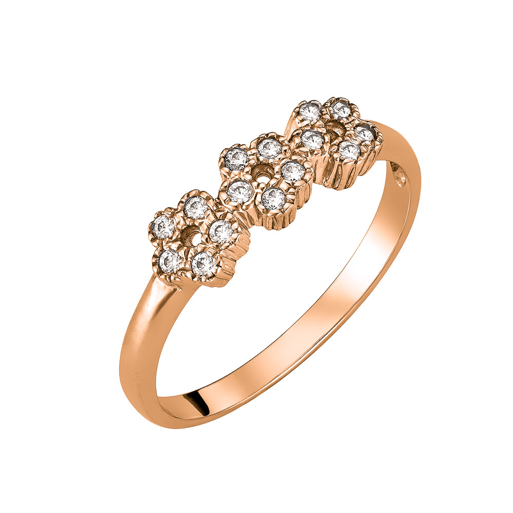 Ροζ χρυσό δαχτυλίδι Κ14 με λευκές πέτρες ζιργκόν.