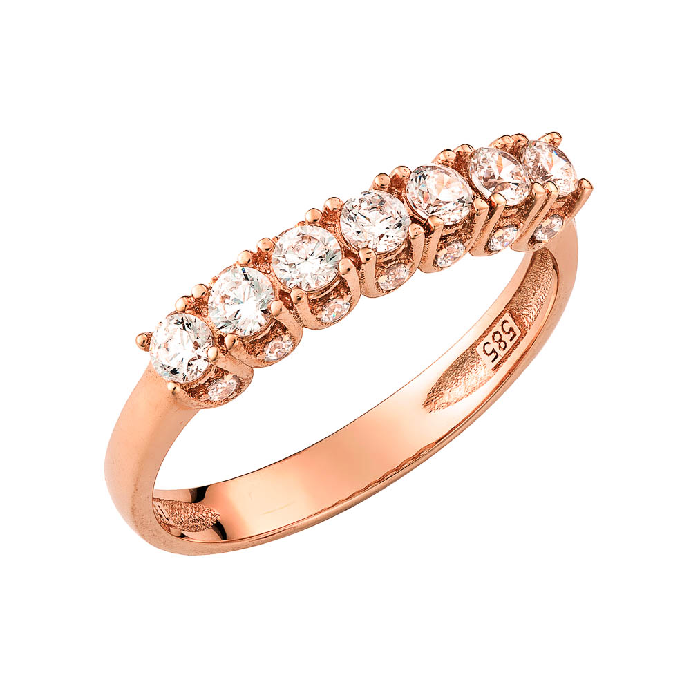 Ροζ χρυσό δαχτυλίδι 14Κ σειρέ με λευκές πέτρες ζιργκον