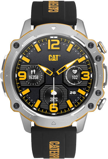 Ανδρικό ρολόι caterpillar από την σειρά SHOCKMASTER με Μεταλλικό Ασημί Μπρασελέ και Μαύρο Λουρί Σιλικόνης