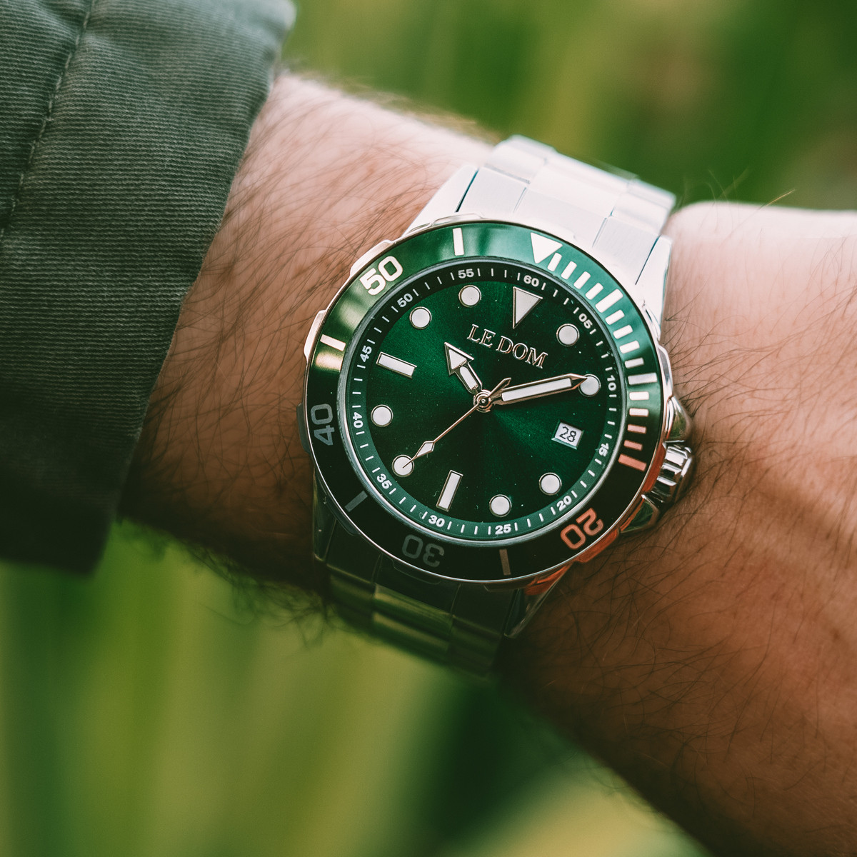 Ανδρικό ρολόι le dom από την σειρά Nautilus με ασημί μπρασελέ και Πράσινο Καντράν.