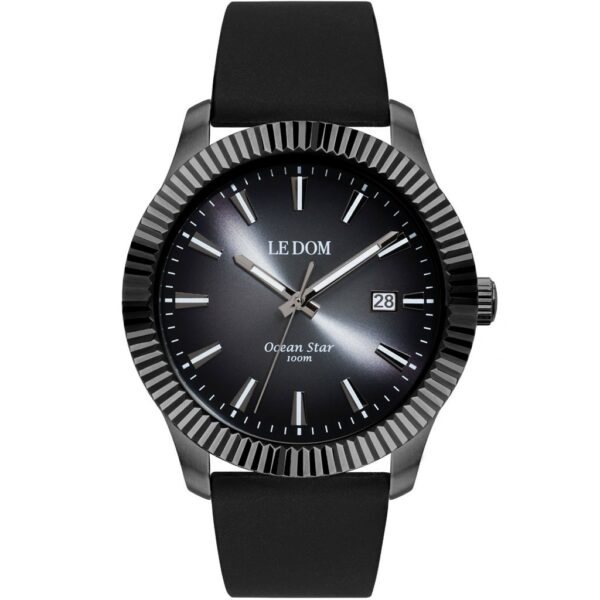 Ανδρικό ρολόι le dom από την σειρά OCEAN STAR με ατσάλινο ανθρακί μπρασελέ σε Box Set που διαθέτει και λουράκι σιλικόνης σε μαύρο χρώμα!