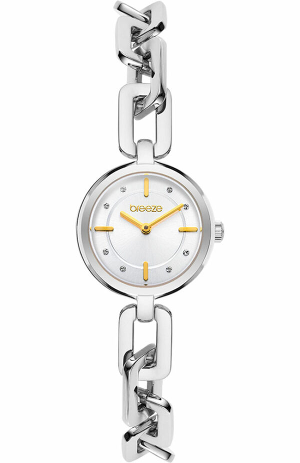 Ρολόι Γυναικείο BREEZE από την σειρά Cadena με λουρί από ανοξείδωτο ατσάλι σε ασημί χρώμα. Το καντράν κοσμείται από 8 κρύσταλλα.
