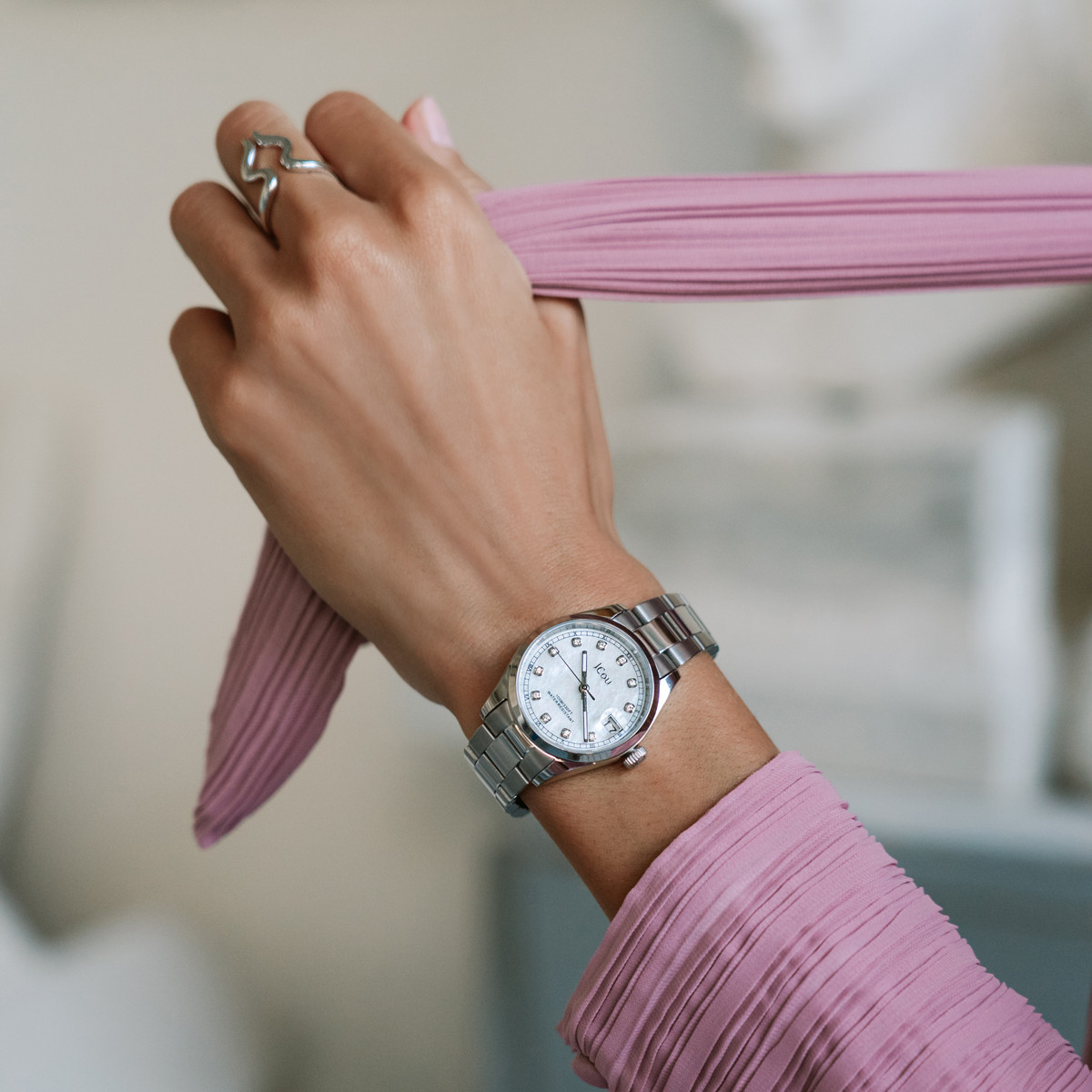 Ρολόι γυναικείο jcou από την σειρά Serenity με ασημί μπρασελέ από ανοξείδωτο ατσάλι