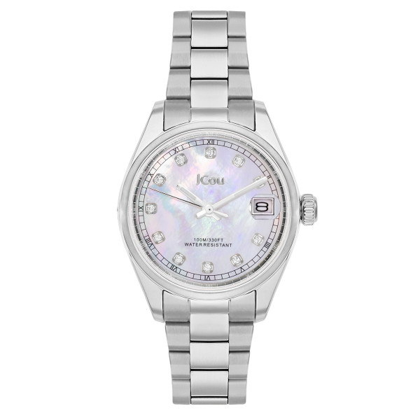Ρολόι γυναικείο jcou από την σειρά Harp με ατσάλινη ανοξείδωτη κάσα 29mm με μπεζ καντράν και ατσάλινο μπρασελέ.