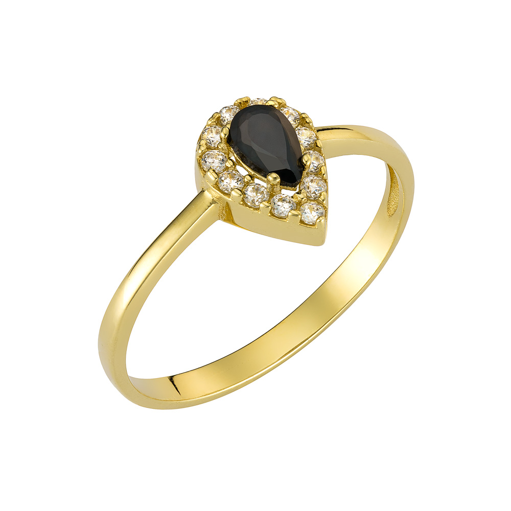 Σετ Χρυσό 14Κ Ροζέτα Σε Σχήμα Δάκρυ Με Μαύρη Πέτρα Ζιργκόν Αποτελούμενο Από Σκουλαρίκια & Δαχτυλίδι SET-23602Y